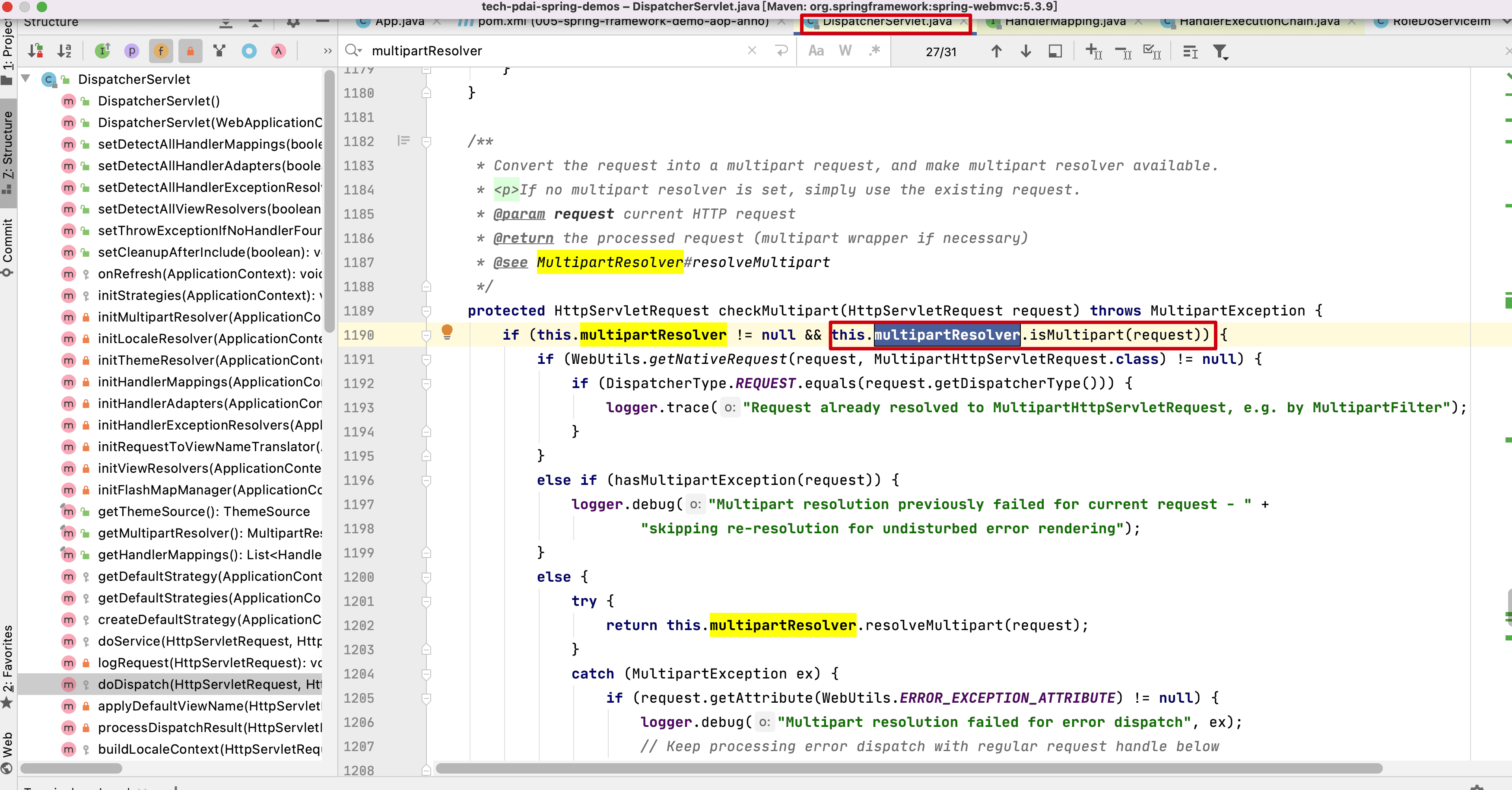 首先我们看DispatcherServlet的类结构关系,在这个类依赖结构中找到init的方法